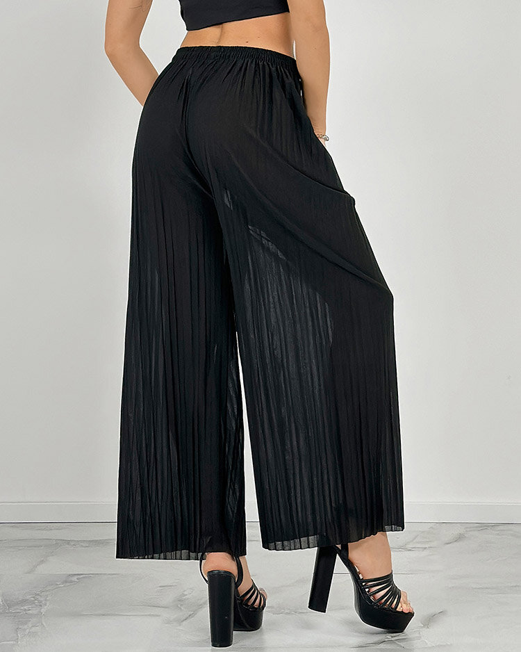 - Сенсационные плиссированные широкие брюки из легкой ткани, модель имеет пояс на резинке и завязки на талии. Обязательно должны быть в вашем шкафу! ПРИМЕЧАНИЕ: Точность измерения (+/-) 1 см.