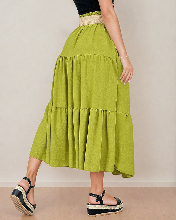 - Нестареющая женская юбка длины миди. Модель имеет эластичный пояс, который отлично подчеркивает талию. Кроме того, в комплект входит плетеный пояс. Эта юбка станет отличным акцентом вашего повседневного образа!