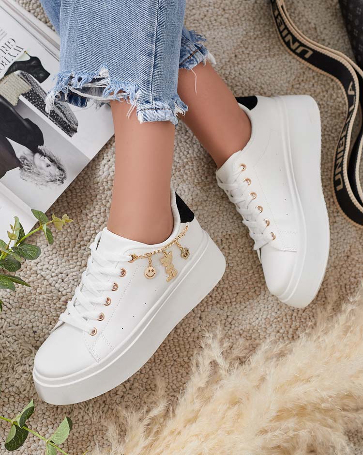 - Женские кроссовки на платформе из экокожи - идеальное сочетание стиля и комфорта. Модель на шнуровке, имеет тканевую стельку. Верх украшен подвеской. Идеальный вариант для активных людей!