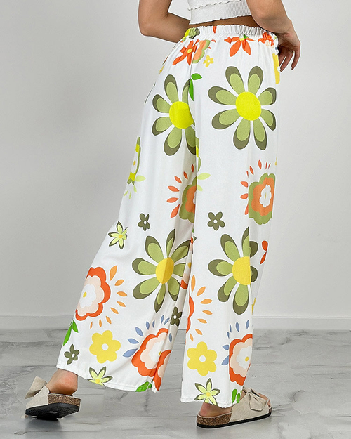 - Женские широкие брюки с цветочным рисунком. Модель со средней талией, с резинкой и завязками на талии, имеет карманы спереди. Мода и комфорт в одном!