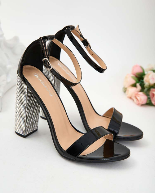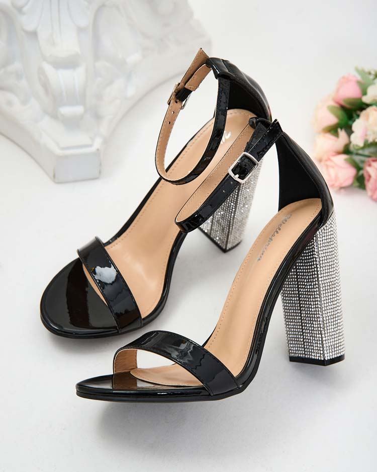 - Сандалии из лакированной экологичной кожи на высокой стойке, застегивающейся на пряжку. Сочетание стиля и комфорта. Массивный каблук, украшенный цирконами, придает уверенность шагу. Идеальны для любого случая!