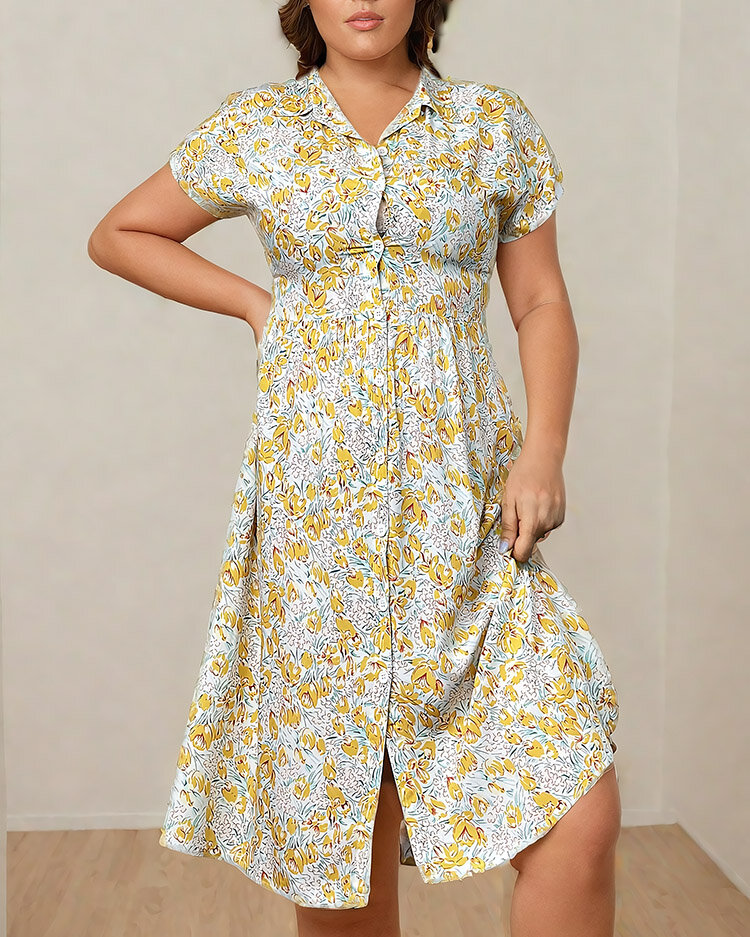 - Уникальное женское платье из легкой ткани с цветочным узором. Оно имеет отложной воротник и застегивается на пуговицы. Изделие имеет длину миди и длинные рукава. Почувствуйте лето в этой модели!