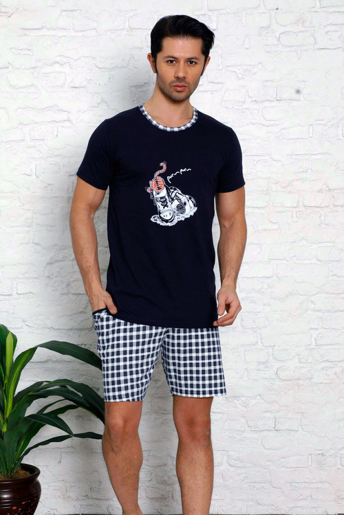 - Удобная мужская пижама из двух частей с короткими рукавами и короткими ножками выполнена из хлопковой ткани. Модель украшена принтом. Идеально подходит для домашних вечеров! ПРИМЕЧАНИЕ: Точность измерения (+/-) 1 см.