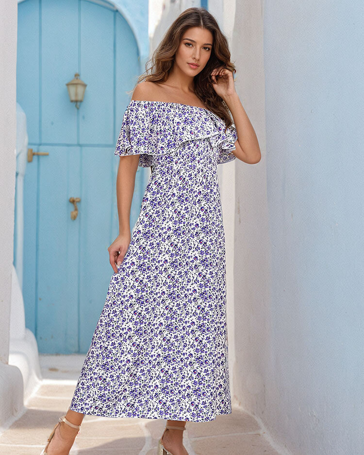 - Легкое женское платье-миди длины миди с цветочным узором, выполненное из приятной ткани. Модель с круглым вырезом а'la hiszpanka и эластичной резинкой по ширине бюста и талии. Носите его с босоножками! ПРИМЕЧАНИЕ: Точность измерений (+/-) 1 см.