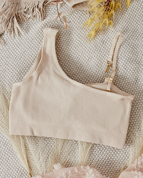 Royalfashion Женский ребристый бюстгальтер с декоративной бретелью