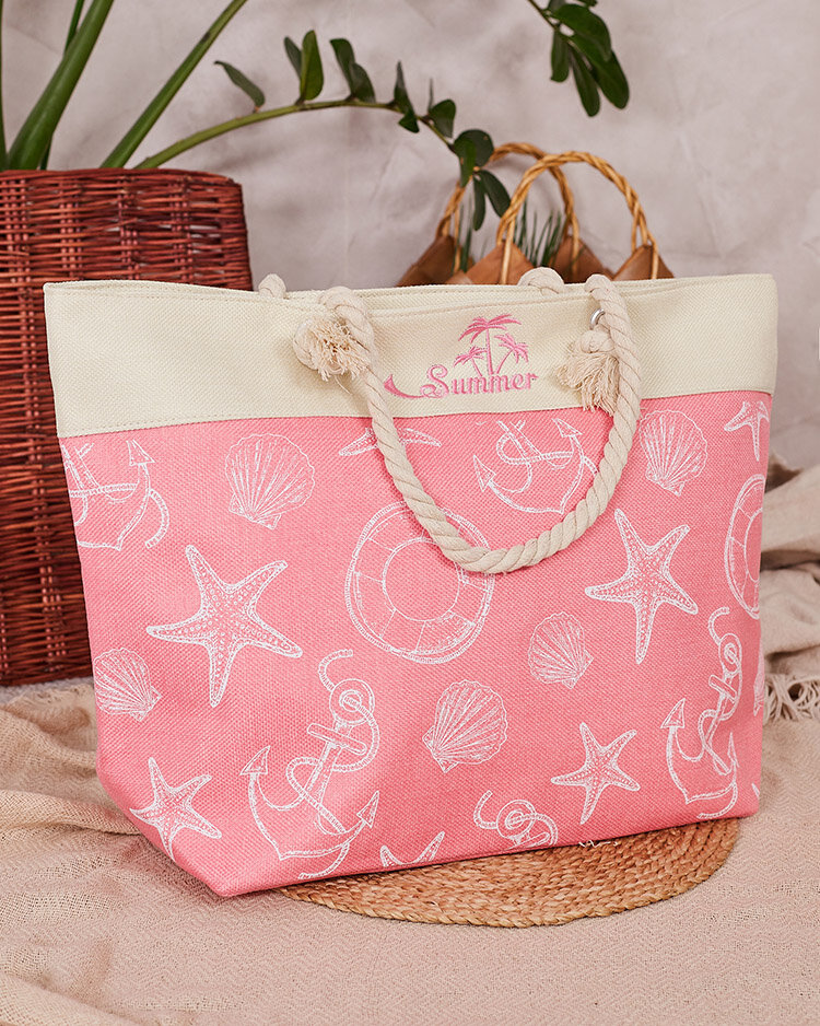 - Большая женская сумка, выполненная из ткани в праздничном узоре. Модель имеет 1 отделение и закрывается на молнию. Идеальный вариант на каждый день или для пляжа!