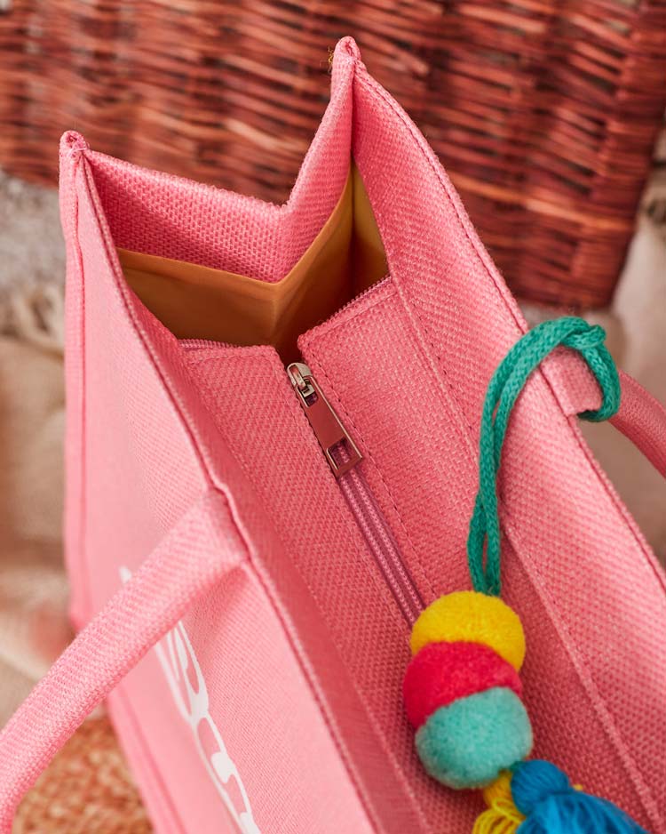 - Большая прямоугольная женская сумка, выполненная из узорчатой ткани с декоративной биркой. Модель имеет 1 внутренний карман и 1 отделение. Застегивается на молнию. Идеальный вариант на каждый день или для пляжа!