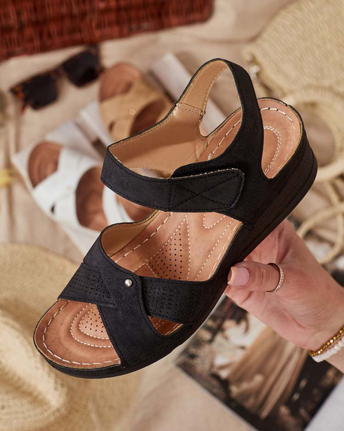 • Женские сандалии на низком каблуке. Выполнены из экокожи, стелька - экокожа. Обувь застегивается с помощью ремешков на липучках. Прекрасно подойдут для создания модных летних нарядов!