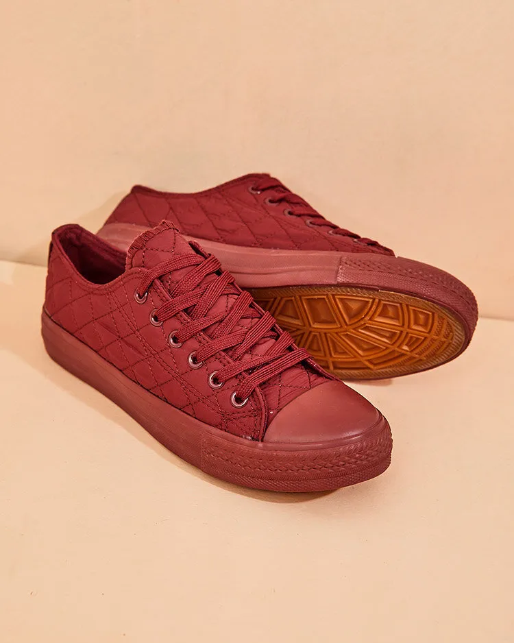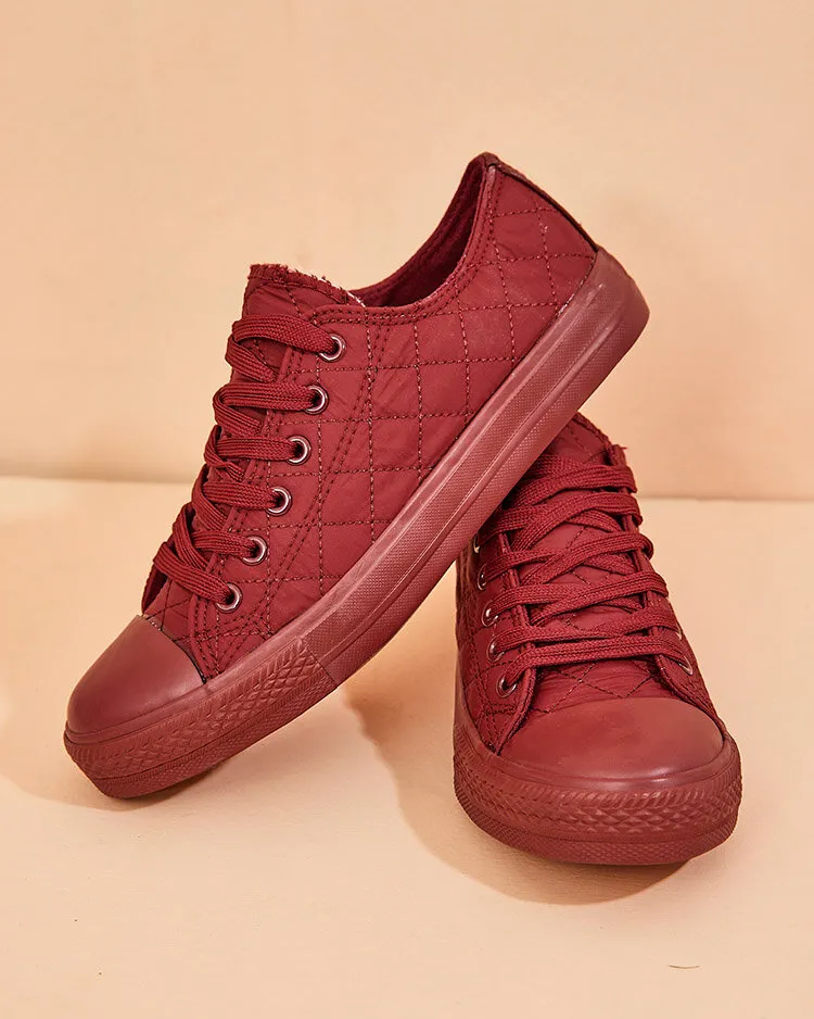 - Женские стеганые кроссовки на плоской подошве. Пара в стиле casual выполнена из тканевого материала. Модель на шнуровке. Идеальный вариант для тех, кто ценит комфорт!