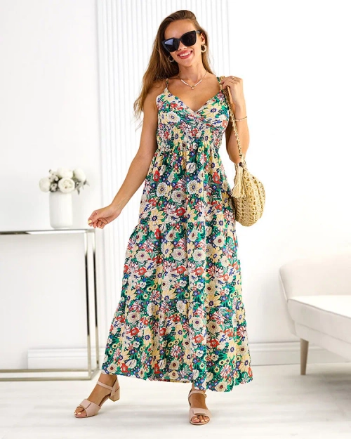 - Узорчатое женское платье длины миди выполнено из приятной хлопковой ткани. Модель с регулируемыми бретелями, с V-образным вырезом горловины и эластичной талией. Носите его с босоножками! ПРИМЕЧАНИЕ: Точность измерений (+/-) 1 см.