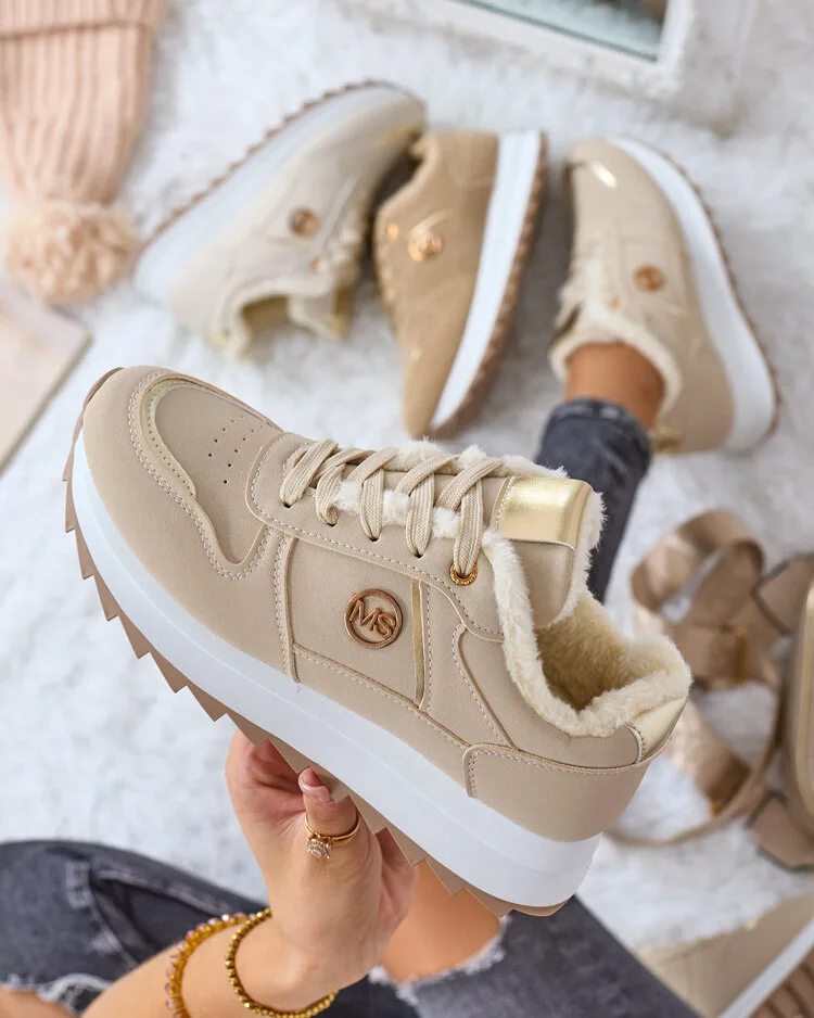 - Женские спортивные кроссовки на толстой подошве. Верх на шнуровке, выполнен из экологичной кожи. Внутренняя часть полностью утеплена мехом. Идеальны для холодных дней!