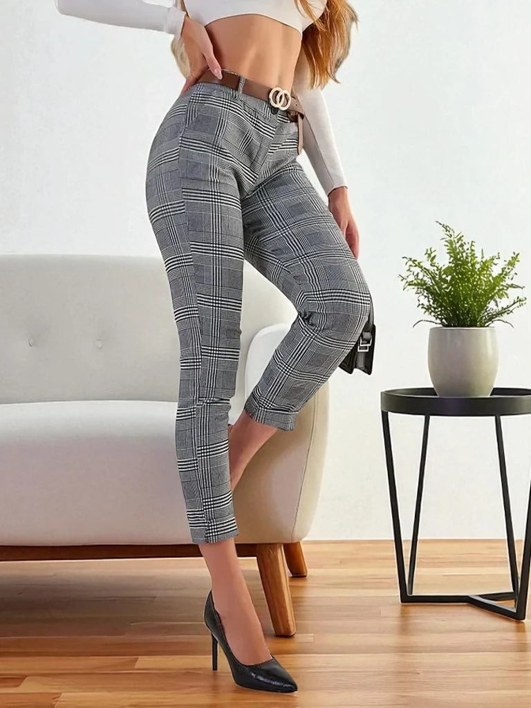 - Элегантные брюки из легкой ткани с декоративным принтом. Модель застегивается на молнию и пуговицу и имеет два кармана. Кроме того, в комплект входит пояс. Комфортно и удобно! ПРИМЕЧАНИЕ: Точность измерения (+/-) 1 см.
