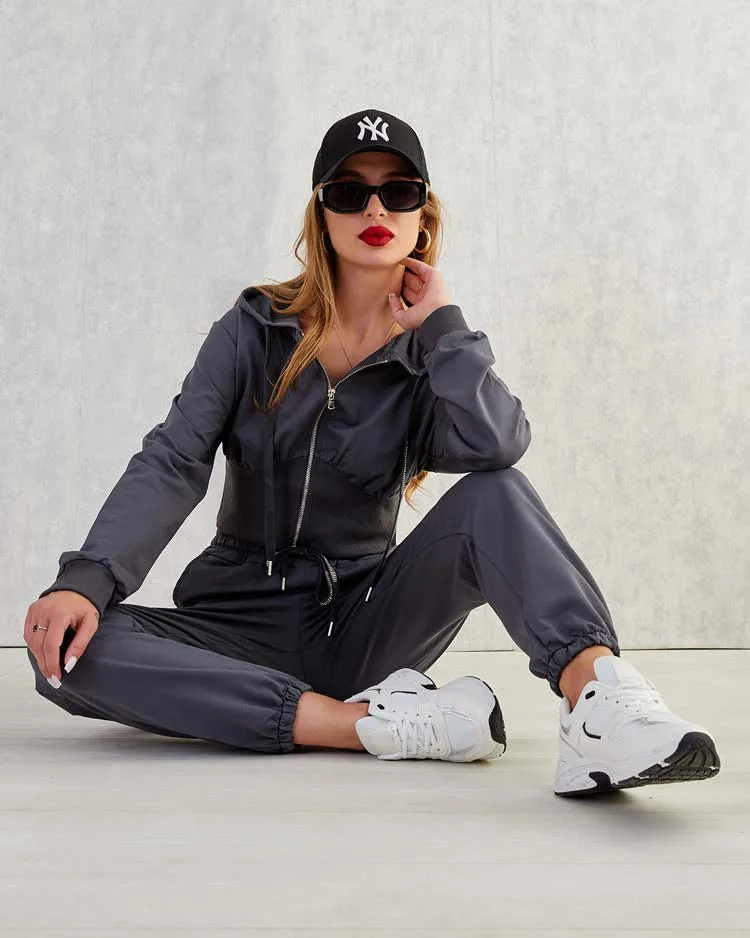 - Женский комплект толстовок из приятной ткани. Толстовка на молнии с капюшоном и брюки с эластичным поясом на штанинах и 2 карманами. Брюки украшены цирконами. ПРИМЕЧАНИЕ: Точность измерения (+/-) 1 см.