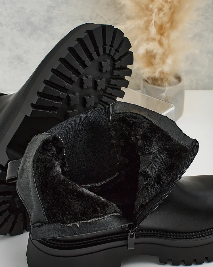 • Сапоги на толстой подошве - стиль и комфорт в одном. Эластичная вставка сбоку и застежка-молния для удобства ношения. Полностью из экокожи и тканевая стелька. Эта модель придаст вам уверенности!