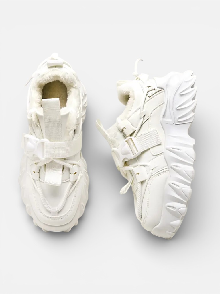 - Женские спортивные кроссовки на толстой подошве. Верх на шнуровке, выполненный из экологичной кожи. Внутренняя часть полностью утеплена мехом. Идеально подходят для спортивных нарядов!