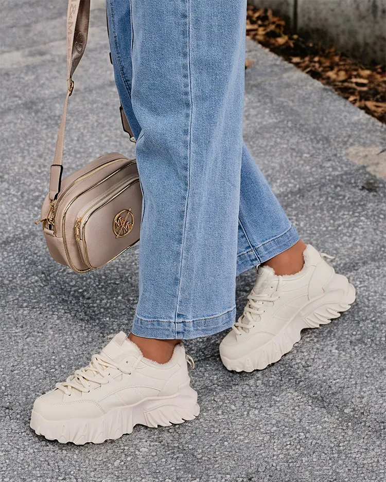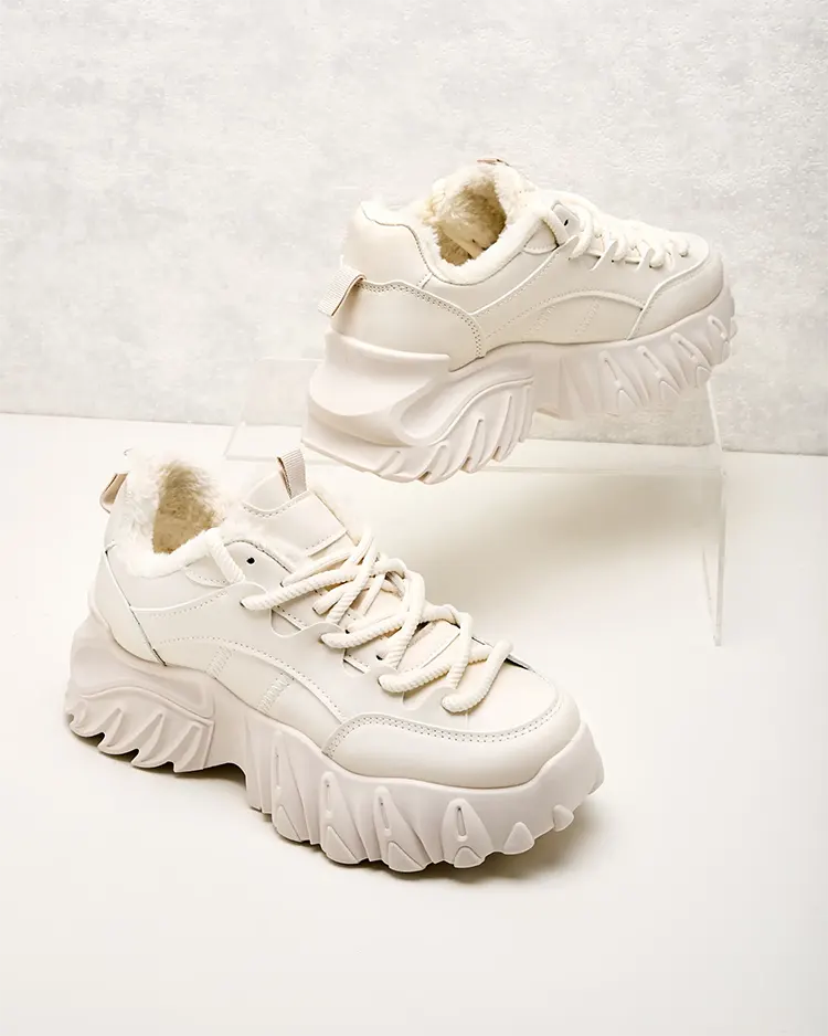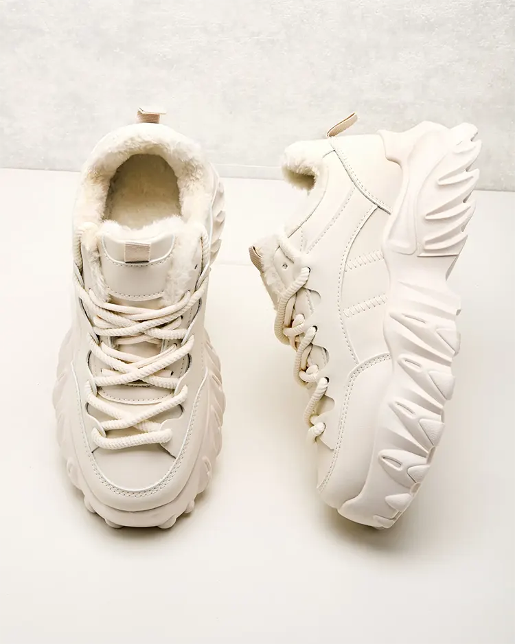 - Женская утепленная спортивная обувь типа кроссовок на толстой подошве. Верх на шнуровке из матовой экологичной кожи. Мягкий мех внутри. Супер дополнение к вашим зимним повседневным нарядам!