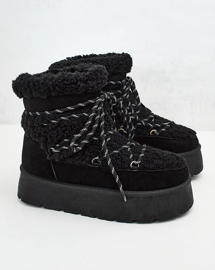 - Женские сапоги на шнуровке с верхом из комбинации экокожи и материала a' la sheepskin. Подкладка с мехом внутри, обувь на шнуровке. Идеально подходят для зимы!