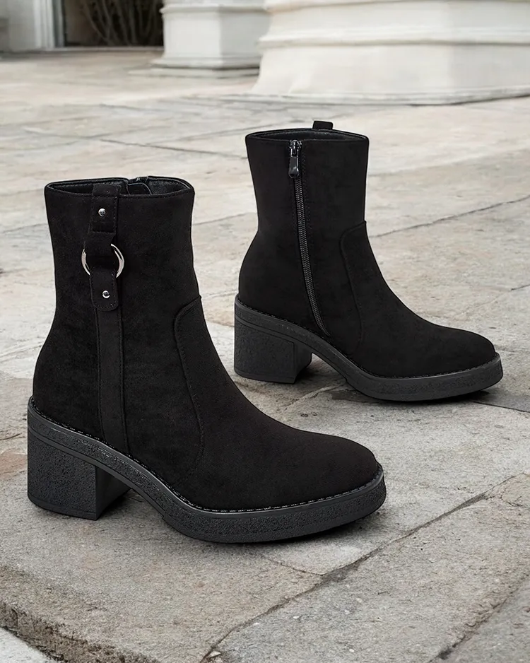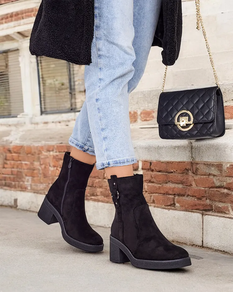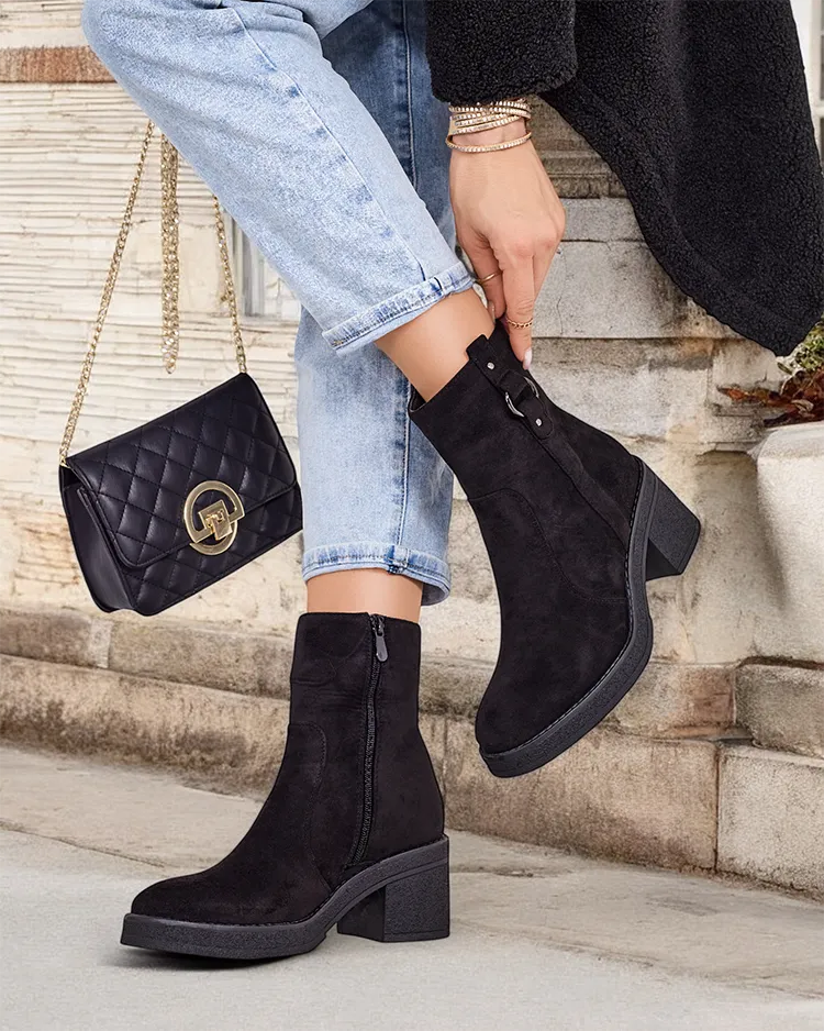- Ботильоны на шпильке - стиль и комфорт в одном. Модель застегивается на молнию с квадратным носом. Обувь изготовлена из экологической замши. Стелька из экокожи. Идеально подходит для осенних нарядов!