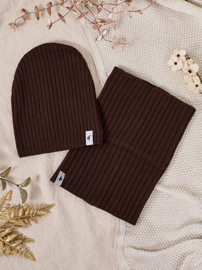 - Универсальный зимний набор с шапкой-бини и трубчатым воротником-шарфом. Набор изготовлен из ребристого вязаного материала. Идеальная база для холодных дней зимы!