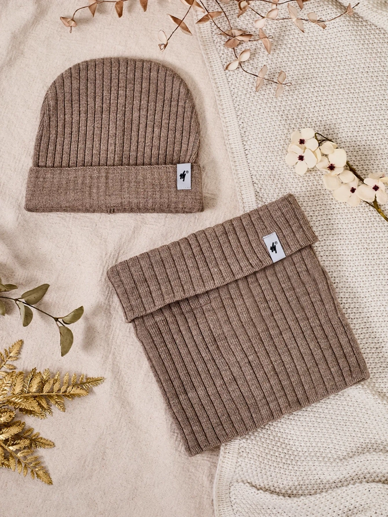 - Универсальный зимний набор с шапкой-бини и трубчатым воротником-шарфом. Набор изготовлен из ребристого вязаного материала. Идеальная база для холодных дней зимы!