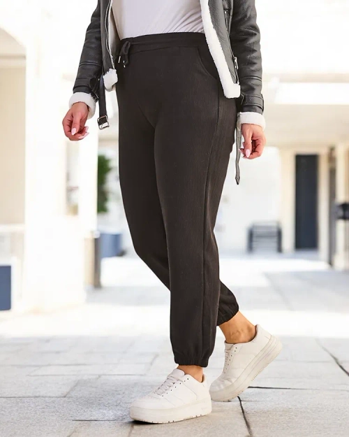 - Нестареющие женские спортивные брюки, изготовленные из мягкого, ребристого материала. Модель с простым кроем, имеет два кармана и эластичный пояс с шнурком. Идеальный выбор для повседневной носки!