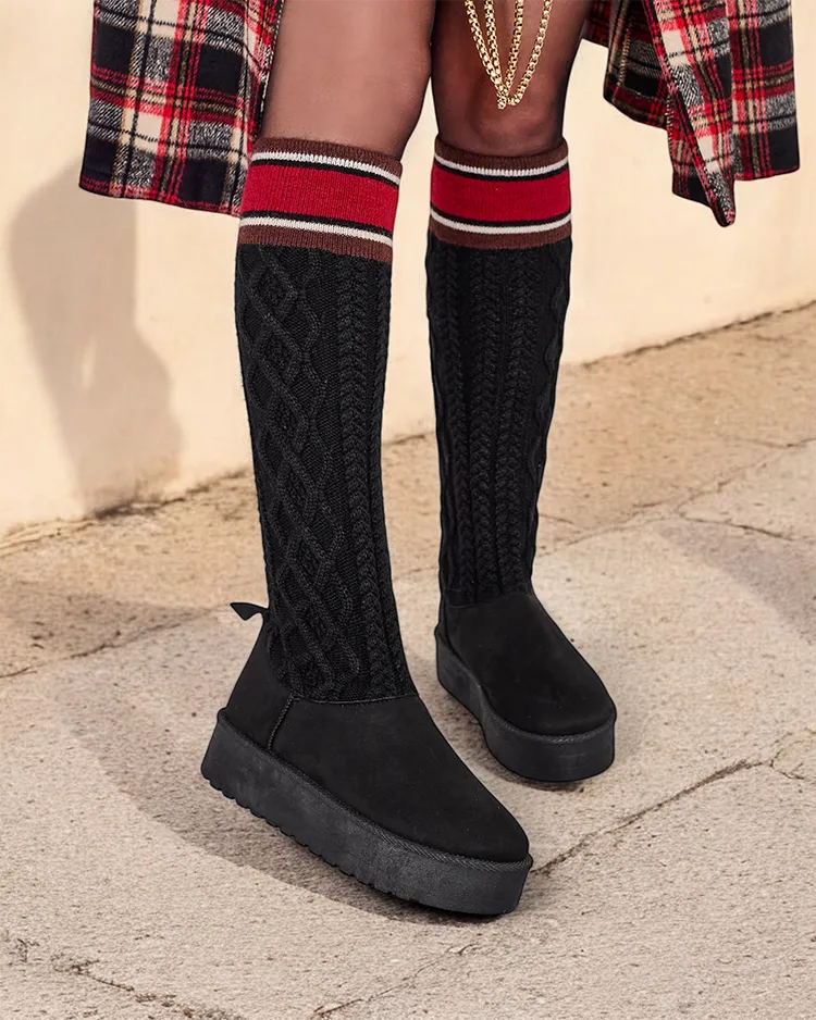 - Отличные женские зимние ботинки в стиле сапог на платформе. Верх изготовлен из комбинации замшевой экокожи и трикотажа, подкладка - мех. Идеальная база для зимы!