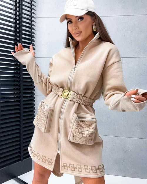 - Очень стильная женская длинная блузка в стиле платья, изготовленная из приятного материала. Модель имеет длинные рукава, асимметричный низ и украшение пайетками. Дополнительно идет пояс. Точность измерения (+/-) 1 см.