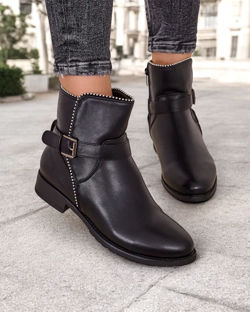- Фантастические женские сапоги на плоском каблуке, изготовленные из экокожи. Интерьер сделан из приятной ткани. Модель имеет молнию и декорированный верх. Идеально подходит для осенних нарядов!
