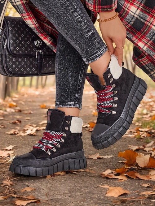 • Женские трекинговые траперы с шнуровкой. Материал изготовлен из замши эко-кожи. Внутри обуви изолированы мехом. Идеально подходят для зимнего времени!