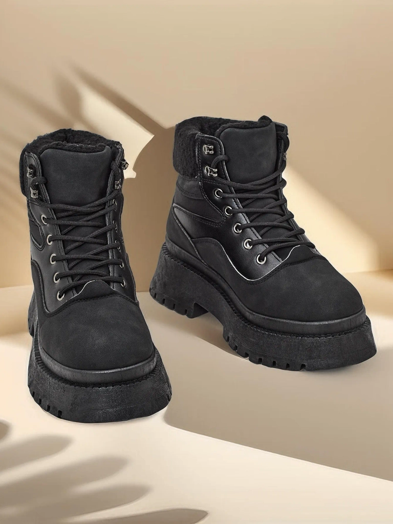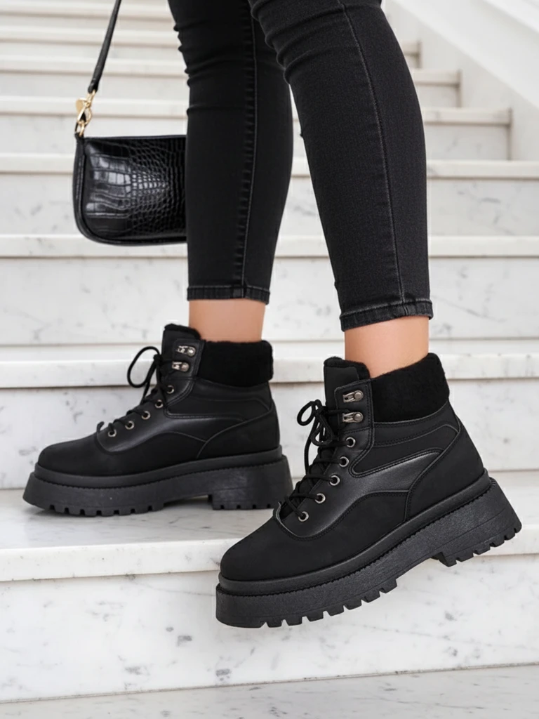 - Вечные женские снежные ботинки с толстой подошвой. Верх из синтетической кожи. Внутри подкладка в виде искусственного меха, шнуровка. Идеально подходят для прохладного времени года!