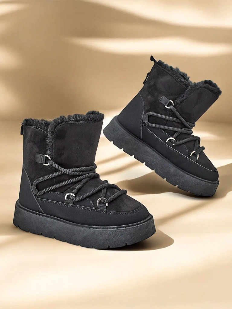 - Женские снежные ботинки с верхом из замши эко-кожи. Обиты уютным мехом внутри, на шнуровке. Идеальны для зимы!