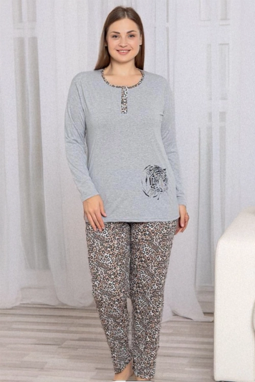 Royalfashion Серые женские пижамы из 2-х частей с леопардовым принтом большого размера
