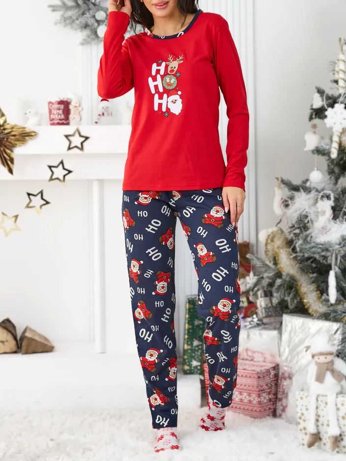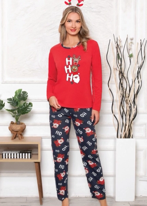 - Женская пижама из двух предметов с длинными рукавами и длинными штанами из хлопкового материала. Модель украшена принтом. Идеально подходит для домашних вечеров! Примечание: Точность измерения (+/-) 1 см.