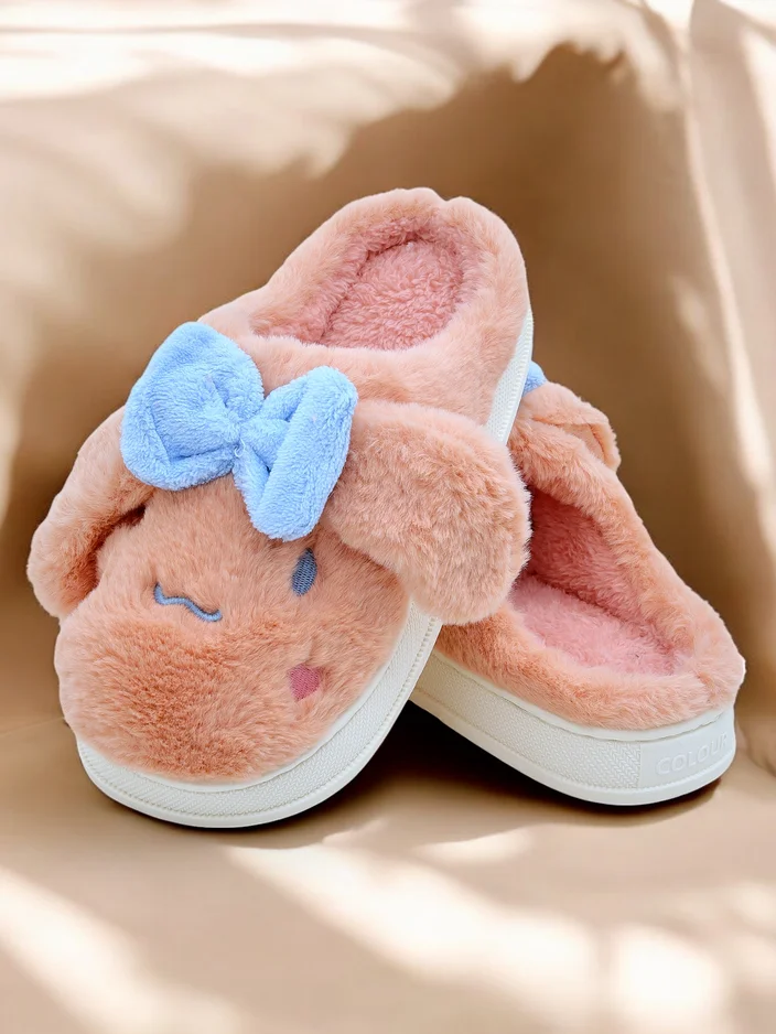 - Удивительные женские тапочки на плоской подошве, украшенные бантом. Модель выполнена из материалов, имитирующих мех. Отличный вариант для домашних нарядов!