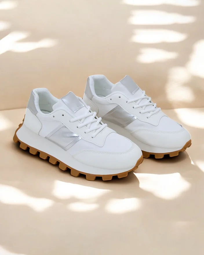 • Женские кроссовки с плоской подошвой, выполненные из комбинированного глянцевого эко-кожи, экологического нубука и текстильных элементов, являются идеальным сочетанием стиля и комфорта. Модель оснащена текстильной стелькой. Идеально подходят для активных
