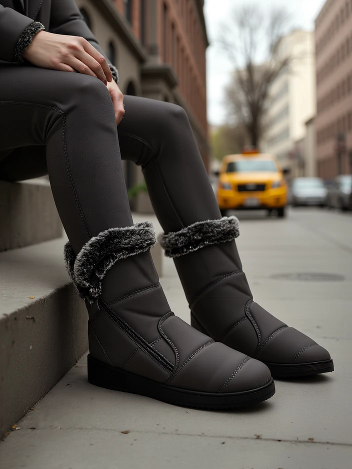 • Отличные зимние снежные ботинки для женщин с плоским каблуком. Верх сделан из ткани, а внутренняя часть утеплена мехом. Модель застегивается на молнию. Идеальная основа для зимы!