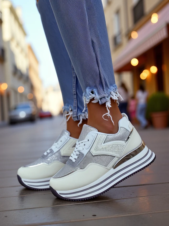 - Женская спортивная обувь в стиле кроссовок с толстой подошвой. Изготовлены из экокожи и блестящего материала с текстильной стелькой. Отличное дополнение к вашим повседневным нарядам!