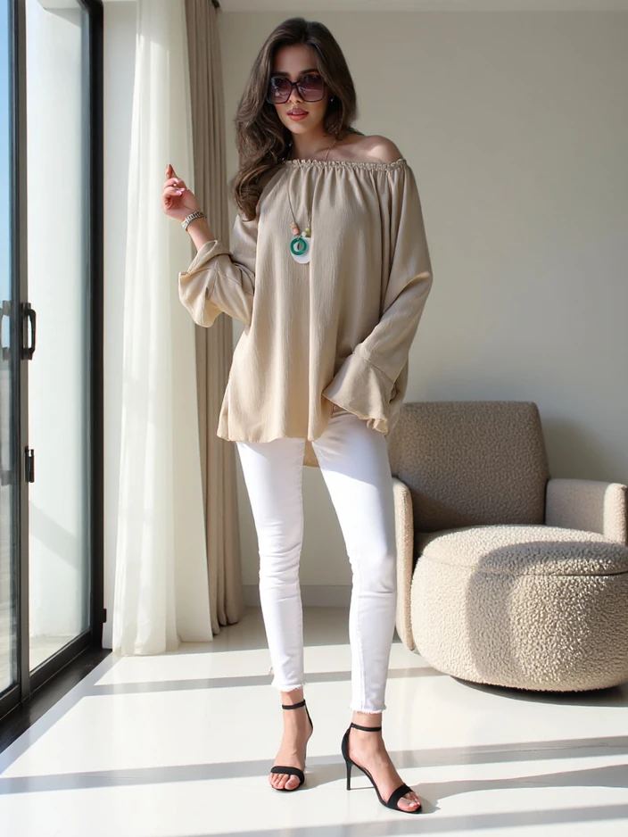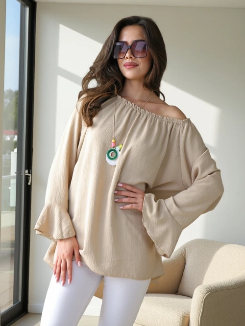- Исключительная женская блуза в испанском стиле, выполненная из мягкого, приятного материала. Она имеет круглую горловину с резинкой и рукава, украшенные рюшами. Кроме того, в комплект входит ожерелье. Идеально подходит как для повседневной носки, так и дл