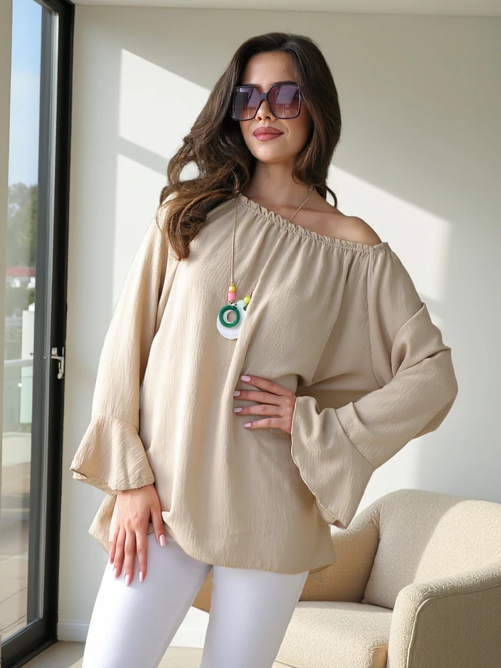 Royalfashion Женская блузка с открытыми плечами и рюшами
