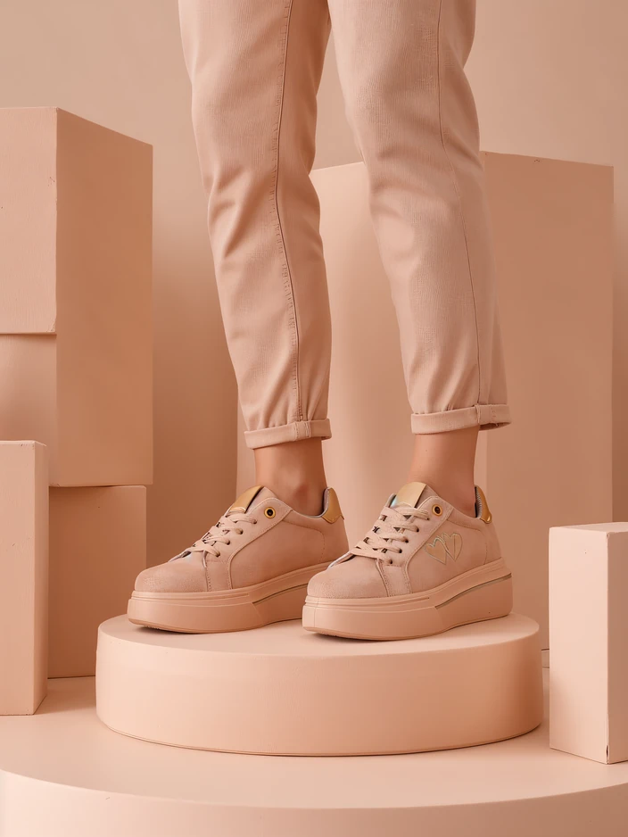 - Женские спортивные кроссовки на плоской подошве, выполненные из верхней части экосюда. Модель имеет стельку из экокожи и декорирована вышитыми сердцами. Совершенно подойдут к широким брюкам и рубашке!