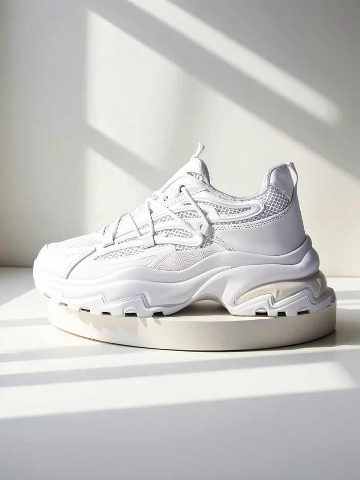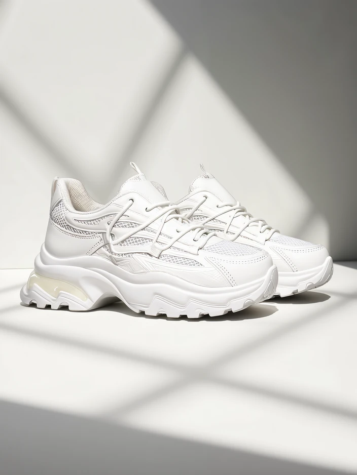 • Женские спортивные кроссовки с плоской подошвой, выполненные из экокожи и ткани с резиновыми вставками. Модель оснащена текстильной стелькой и более толстой подошвой. Сочетайте их с широкими брюками и рубашкой!