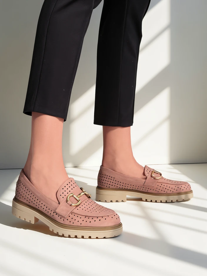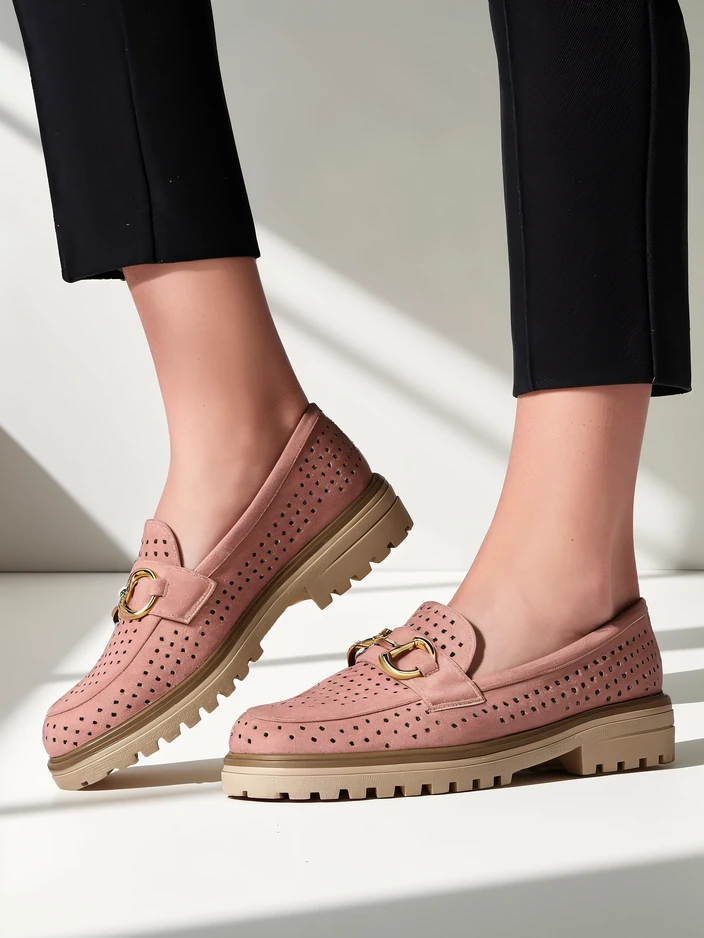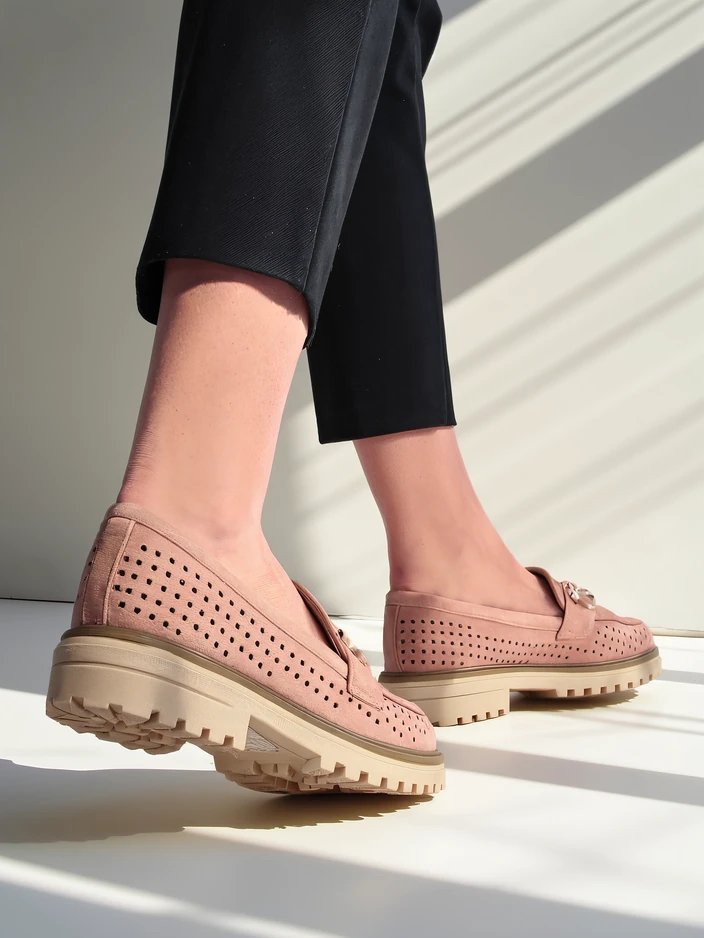 - Прекрасные перфорированные женские лоферы на массивной подошве. Модель в повседневном стиле, выполнена из экософтовой замши, стелька из экокожи. Обувь с тонкой отделкой на верхней части. Идеально подходит для осенних образов!