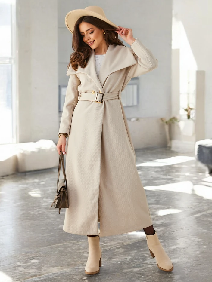 - Вечная женская пальто длиной до щиколоток с завязанным поясом на талии. Модель с длинными рукавами и застежкой на пуговицы. Имеет подкладку. Идеальный вариант для осени! ПРИМЕЧАНИЕ: Точность измерения (+/-) 1 см. Размеры измерены в разложенном виде.
