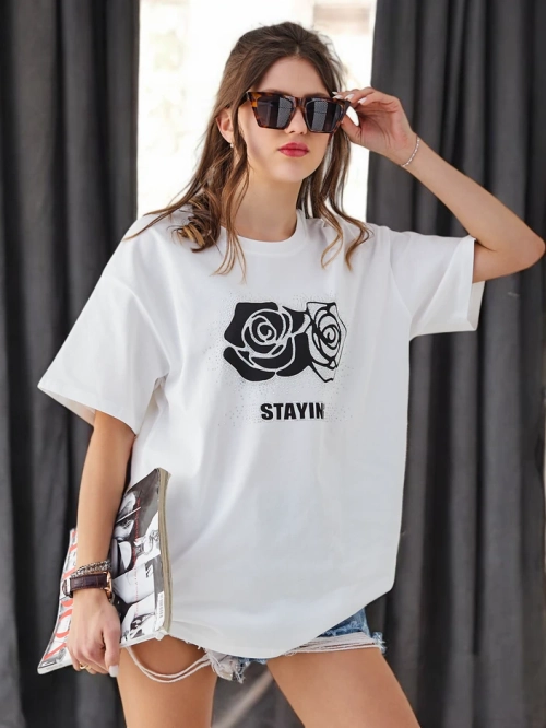 - Хлопковая женская футболка — это легкий и комфортный вариант на каждый день. Вдохновленная стразами, она идеально подходит для повседневных стилей. Мягкая ткань обеспечивает комфорт, а минималистичный дизайн делает её подходящей для различных нарядов.