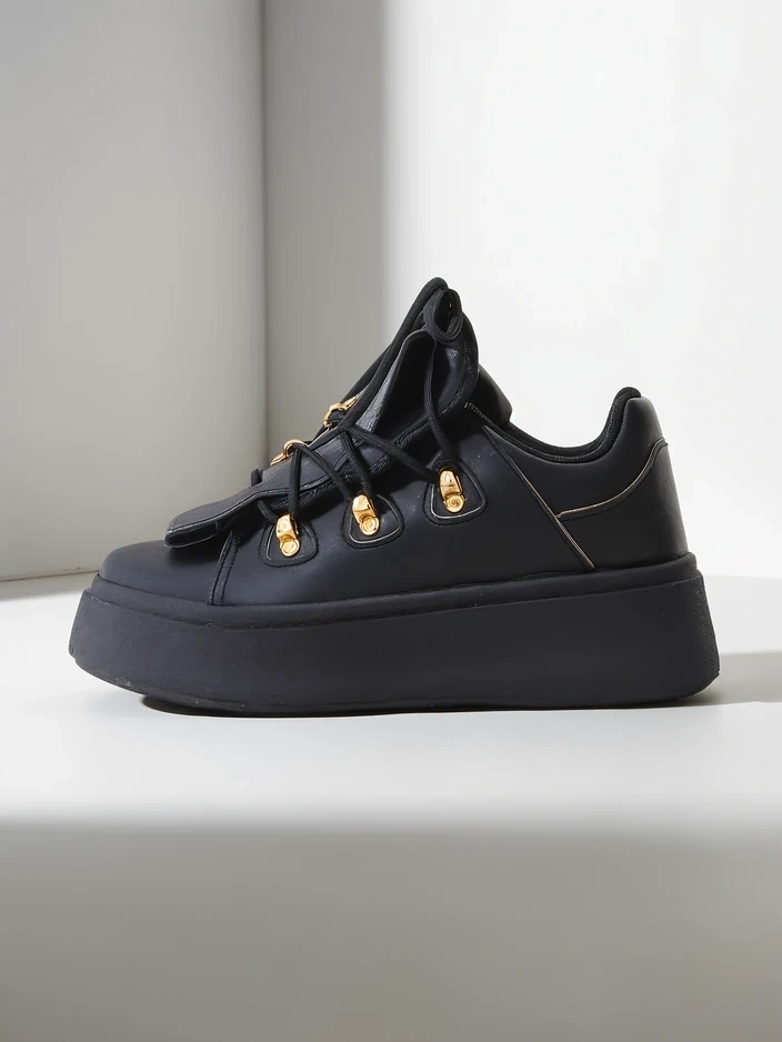 Кроссовки Royalfashion для женщин с декоративным язычком. Стильные женские кроссовки на толстой подошве. Верх изготовлен из синтетической кожи и имеет шнуровку. Внутренняя часть выполнена из приятной ткани. Модель оснащена декоративным язычком. Идеально п