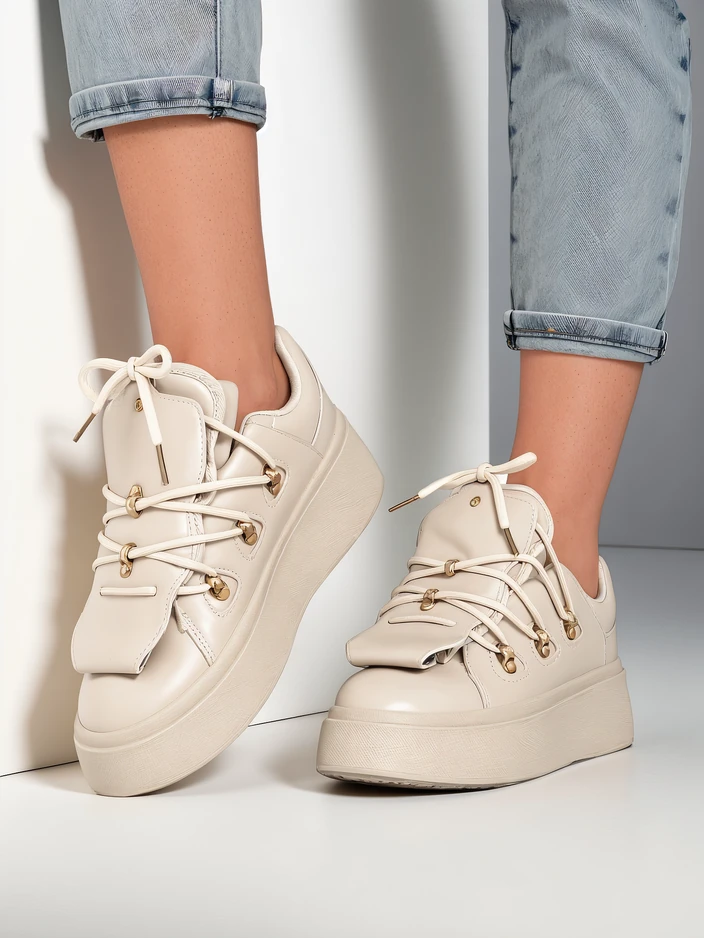 - Спортивные женские кроссовки на толстой подошве. Верх на шнуровке из экологически чистой кожи. Внутренняя отделка из приятной ткани. Модель имеет декоративный язычок. Идеально подходят для повседневного использования!