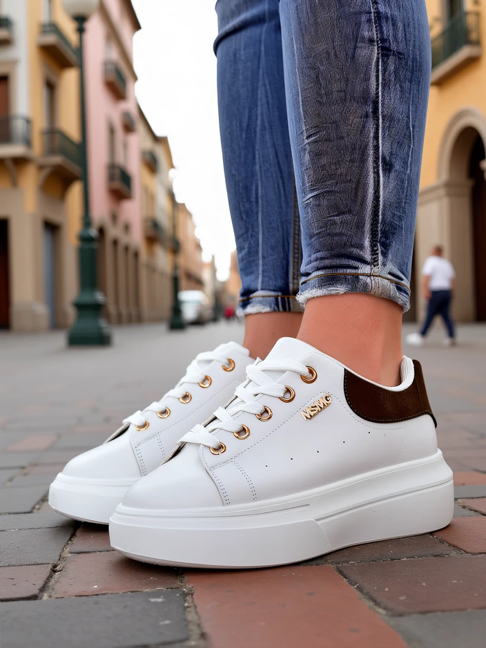 Sneakersy Callista od Royalfashion to wyjątkowa propozycja dla kobiet ceniących wygodę i subtelny styl. Wykonane z wysokogatunkowej skóry ekologicznej, cechują się estetycznym wykończeniem i trwałością. Dzięki procesowi produkcji opartemu na rygorystycznej kontroli jakości i przyjaznym środowisku technologiom, te buty nie tylko prezentują się doskonale, ale również posłużą przez wiele sezonów. Przewiewna, tekstylna wkładka oraz zewnętrzna tkanina zapewniają uczucie świeżości i komfort przez cały dzień.Cechą wyróżniającą model Callista jest solidna, płaska podeszwa o wysokości 4,5 cm, która gwarantuje stabilność oraz wysoki komfort noszenia, nawet przy dłuższych spacerach czy aktywnym dniu. Nosek typu okrągłego oraz klasyczne sznurowanie sprawiają, że sneakersy dobrze układają się na stopie, dopasowując się do jej kształtu. Brak wzoru i jednolita, czarna kolorystyka z kontrastującym zapiętkiem to idealna baza do wielu stylizacji.Buty świetnie wpisują się w obecne trendy – minimalistyczny design, wysoka podeszwa oraz uniwersalność sprawiają, że to must-have na wiosnę, lato i jesień. Stylistycznie możesz je łączyć na różne sposoby:1. Casualowy look – połącz sneakersy z jasnymi jeansami rurkami i prostym T-shirtem, uzyskując wygodny zestaw na co dzień.2. Streetwear – zestaw z krótką sukienką lub spódnicą midi oraz oversize’ową marynarką, podkreślając miejski szyk.3. Sportowa elegancja – załóż do legginsów oraz bluzy z kapturem, idealnie sprawdzą się podczas weekendowych spacerów lub zakupów.Pielęgnacja sneakerów Callista jest bardzo prosta – wystarczy czyścić je wilgotną ściereczką z dodatkiem delikatnego detergentu i suszyć z dala od źródeł ciepła. Zalecane jest także stosowanie środków do pielęgnacji skóry ekologicznej, by zachować ich świeżość oraz elastyczność materiału.Model ten wpisuje się w aktualne tendencje mody miejskiej, gdzie królują wygodne, wyraziste buty na platformie, które skutecznie podkreślają indywidualny styl i dodają pewności siebie każdej stylizacji. Sneakersy Callista Royalfashion to doskonały wybór dla kobiet aktywnych i ceniących nowoczesną klasykę.