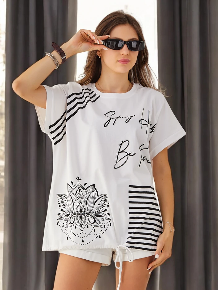• Женская хлопковая футболка — легкий и удобный вариант на каждый день. Вдохновленная положительным слоганом, она идеально подходит для повседневного стиля. Мягкая ткань обеспечивает комфорт, а минималистичный дизайн делает её подходящей для различных наряд