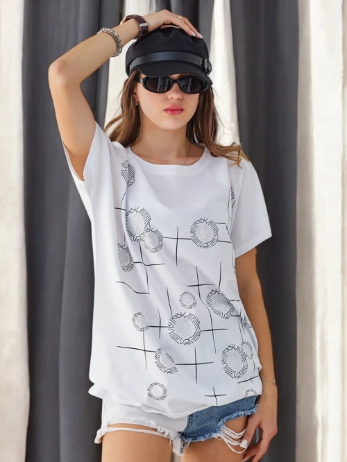 - Эта женская футболка из хлопка – легкий и удобный вариант на каждый день. Вдохновленная позитивным слоганом, она идеально подходит для повседневных образов. Мягкая ткань обеспечивает комфорт, а минималистичный дизайн позволяет легко сочетать с различными