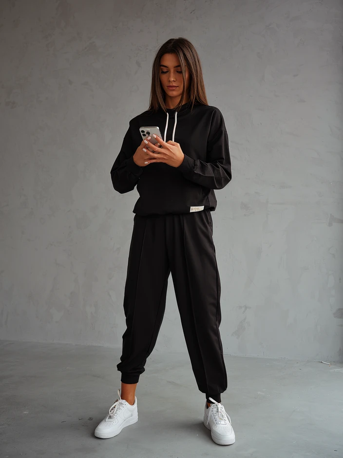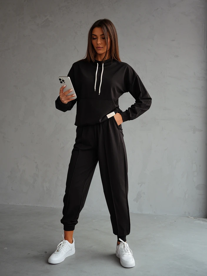 - Женский повседневный комплект из приятной ткани. Светшот надевается через голову, имеет длинные рукава и карман. Зауженные брюки с 2 боковыми карманами и эластичным поясом. Идеально для тех, кто ценит комфорт.